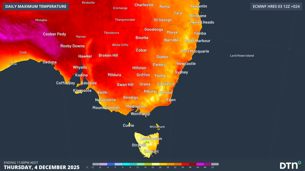 Image: Forecast maximum temperatures on Thursday, December 4, 2025.