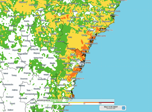 At 11am AEDT on Monday, temperatures had already reached 34ºC in western Sydney, 33ºC at the airport and just over 31ºC in the city. This wasn’t far off the state’s highest temperature at this point in the morning, which was 35.8ºC at Bourke.