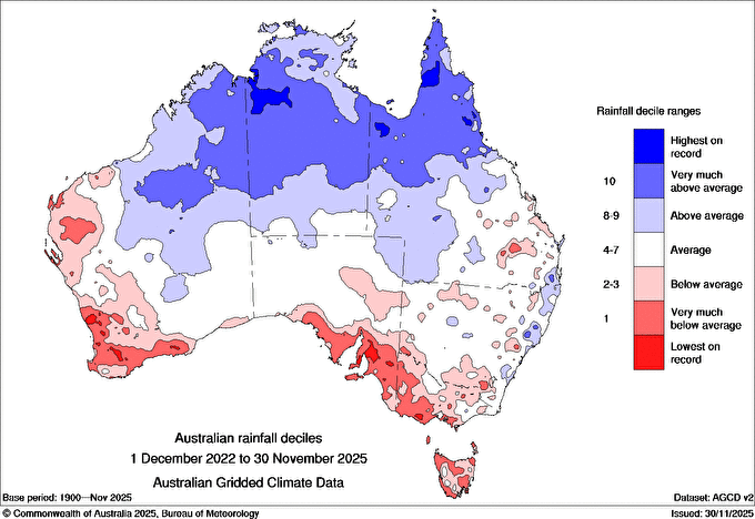 Parts of Australia have experienced severe soil moisture and rainfall deficiencies over the past months and years, while high fuel loads (grass, bush and forest) combined with hot and dry weather, should drive elevated fire danger over the coming 2025-26 summer.