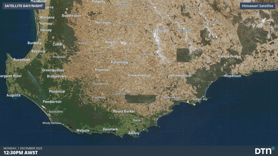Image: Smoke dissipating from active fire over WA’s southwest and south on Monday, December 1, 2025.