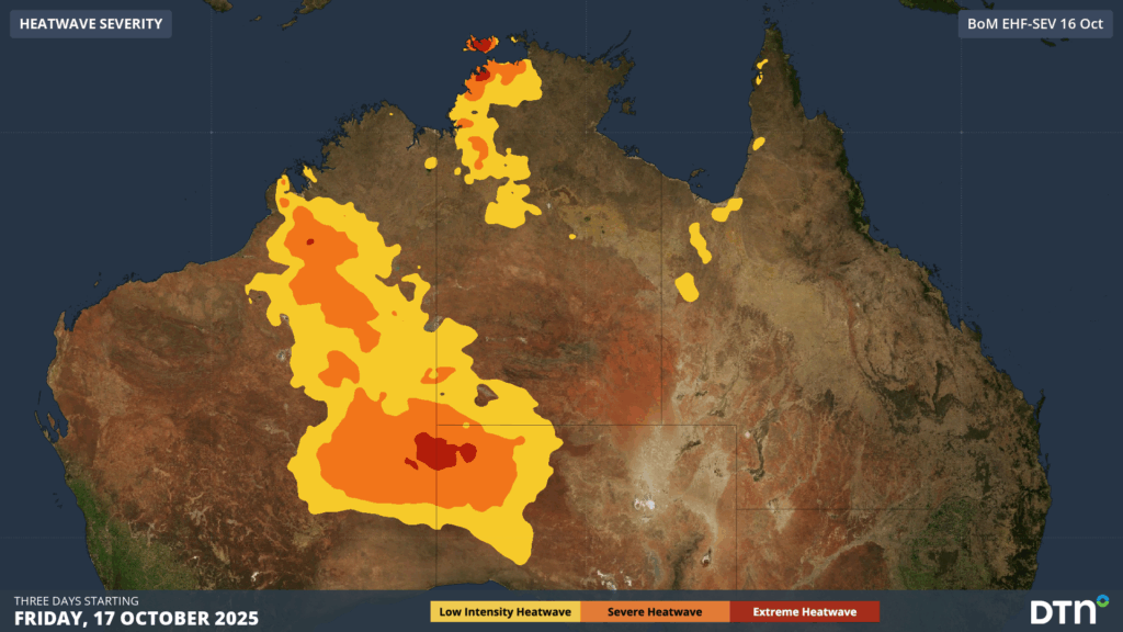 Image: Severe-to-Extreme Heatwave conditions forecast between Friday and Sunday, October 17-19, 2025.