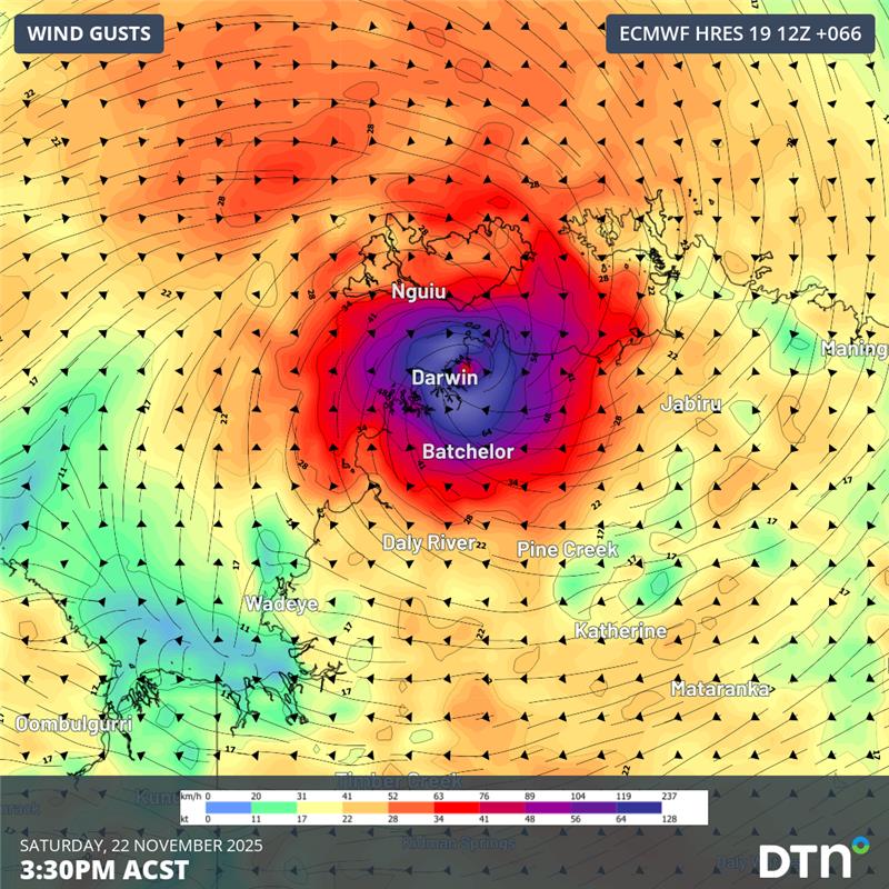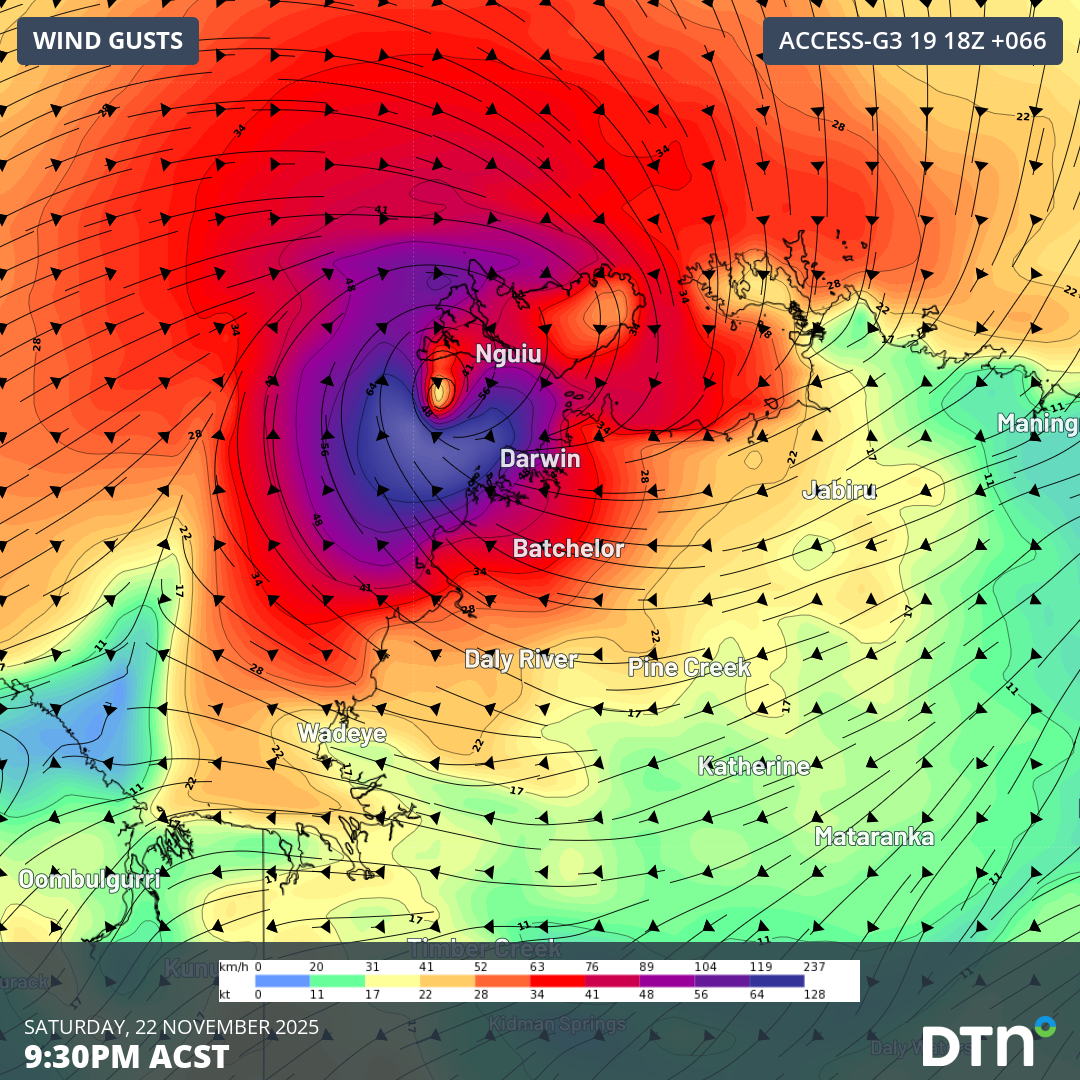 Tropical Cyclone Fina has turned towards the Northern Territory coast and is expected to make landfall over the Top End on Friday, November 21, 2025. The system could then regain strength over the warm Van Diemen Gulf, before passing close to Darwin on the weekend. The last tropical cyclone to directly impact Darwin was Tropical […]