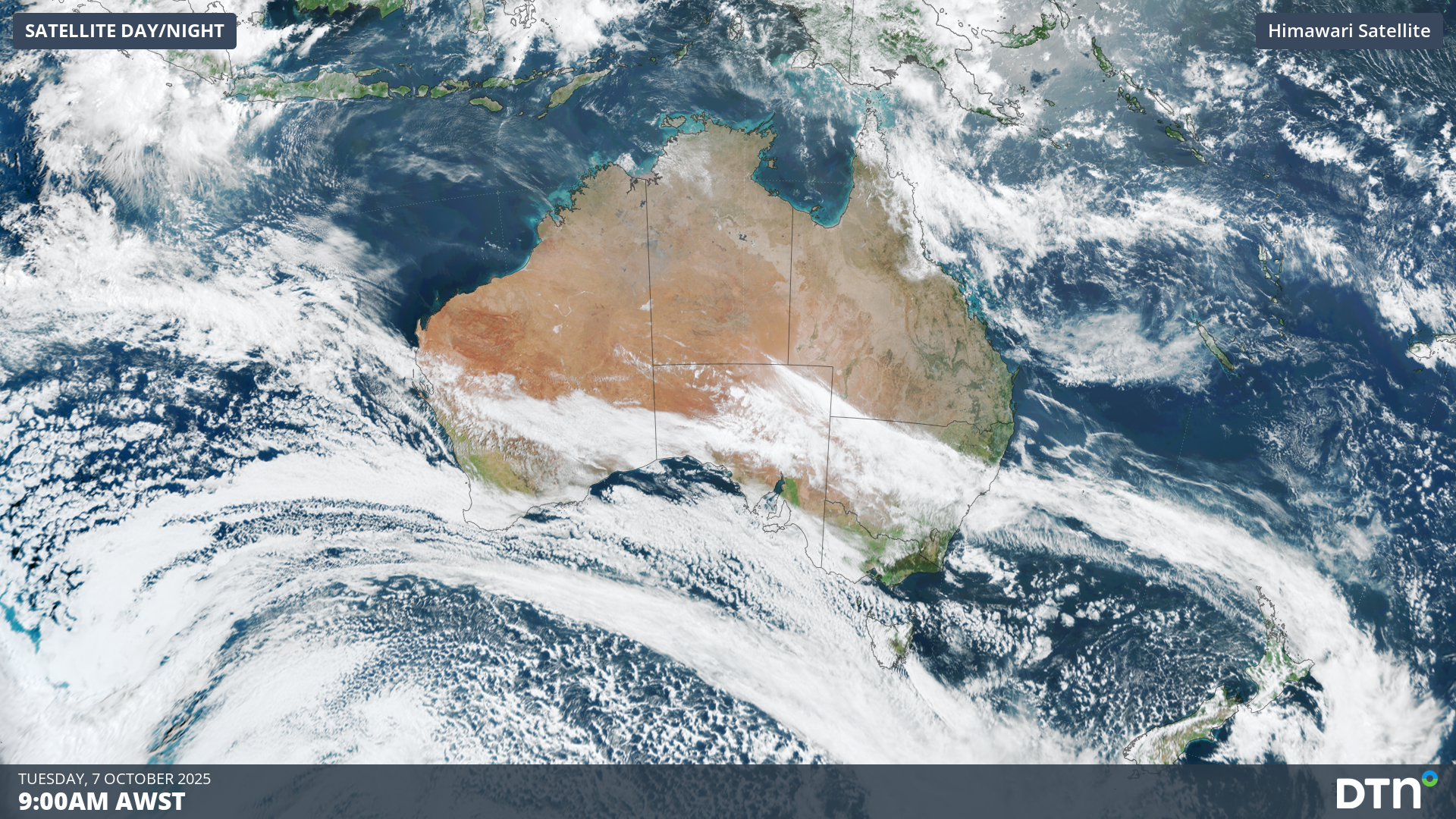Meanwhile as we head into Tuesday afternoon, the cloudband continues to deliver light rainfall to parts of inland SA and NSW as it streams eastwards across the country.