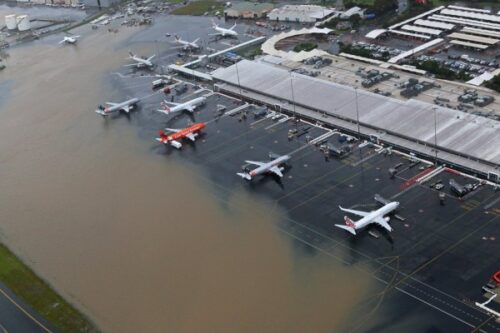 How has heavy rainfall impacted the aviation industry?